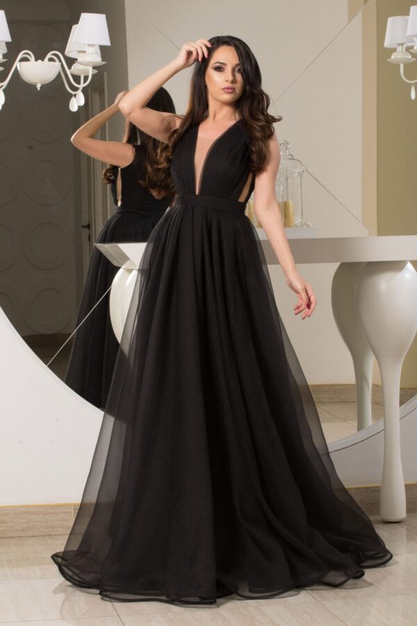 Rochie Lunga, Din Organza cu Matase, Culoare Negru CLARA