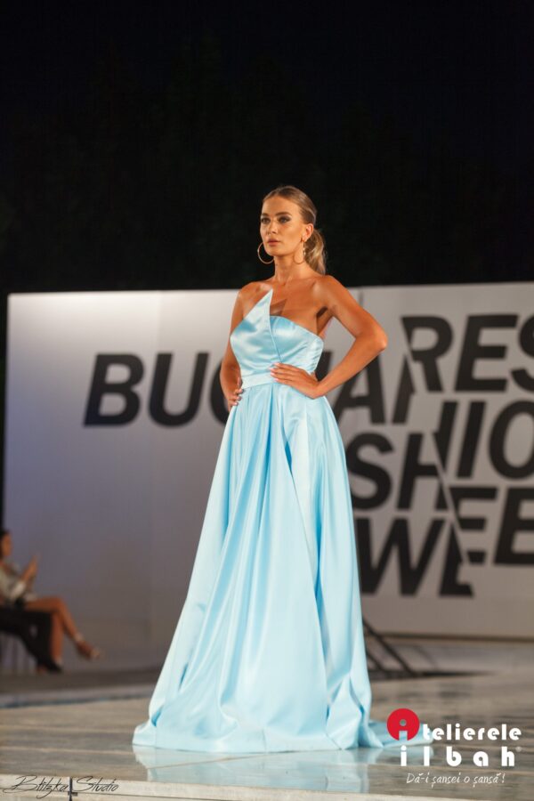 Rochie Lunga, Tip Corset, Din Tafta, Culoare Bleo BABY BLUE