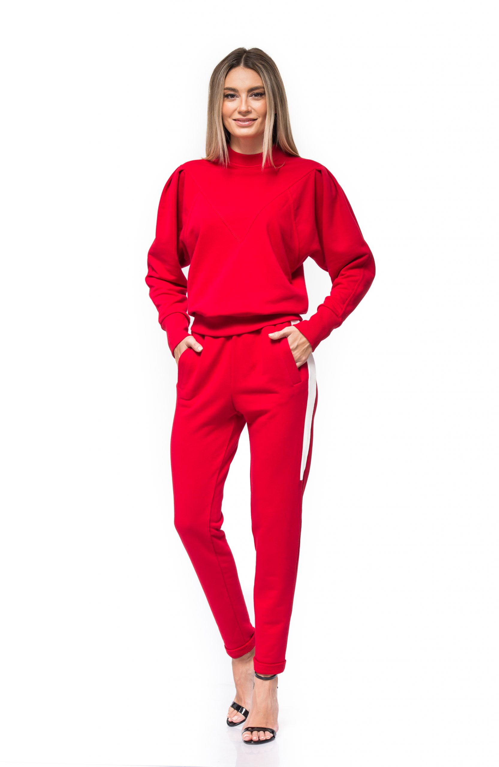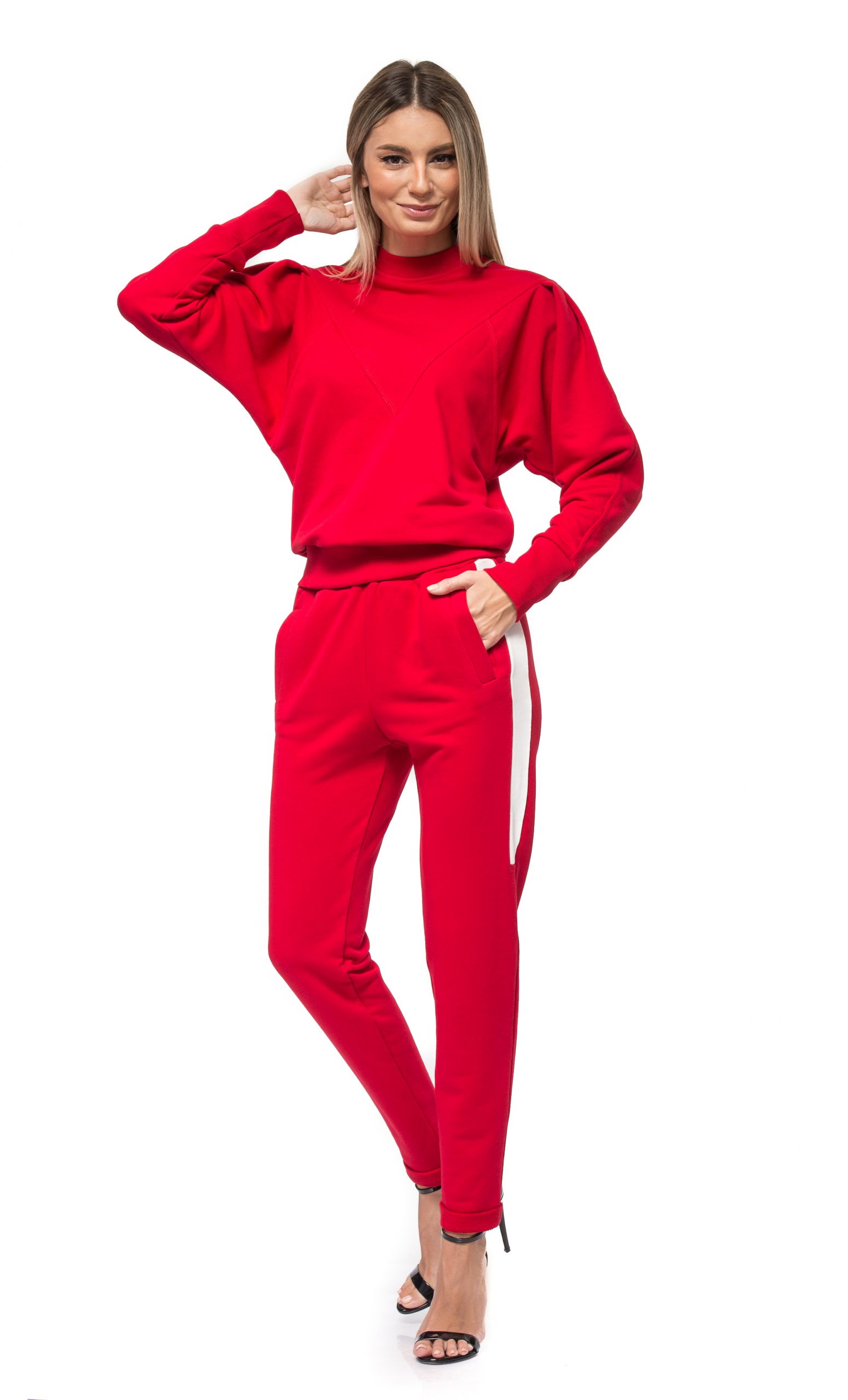 case de moda bucuresti Bluza sport, rosie cu maneci bufante, NICOLE Prețul inițial a fost: 310,00 lei.Prețul curent este: 189,00 lei.