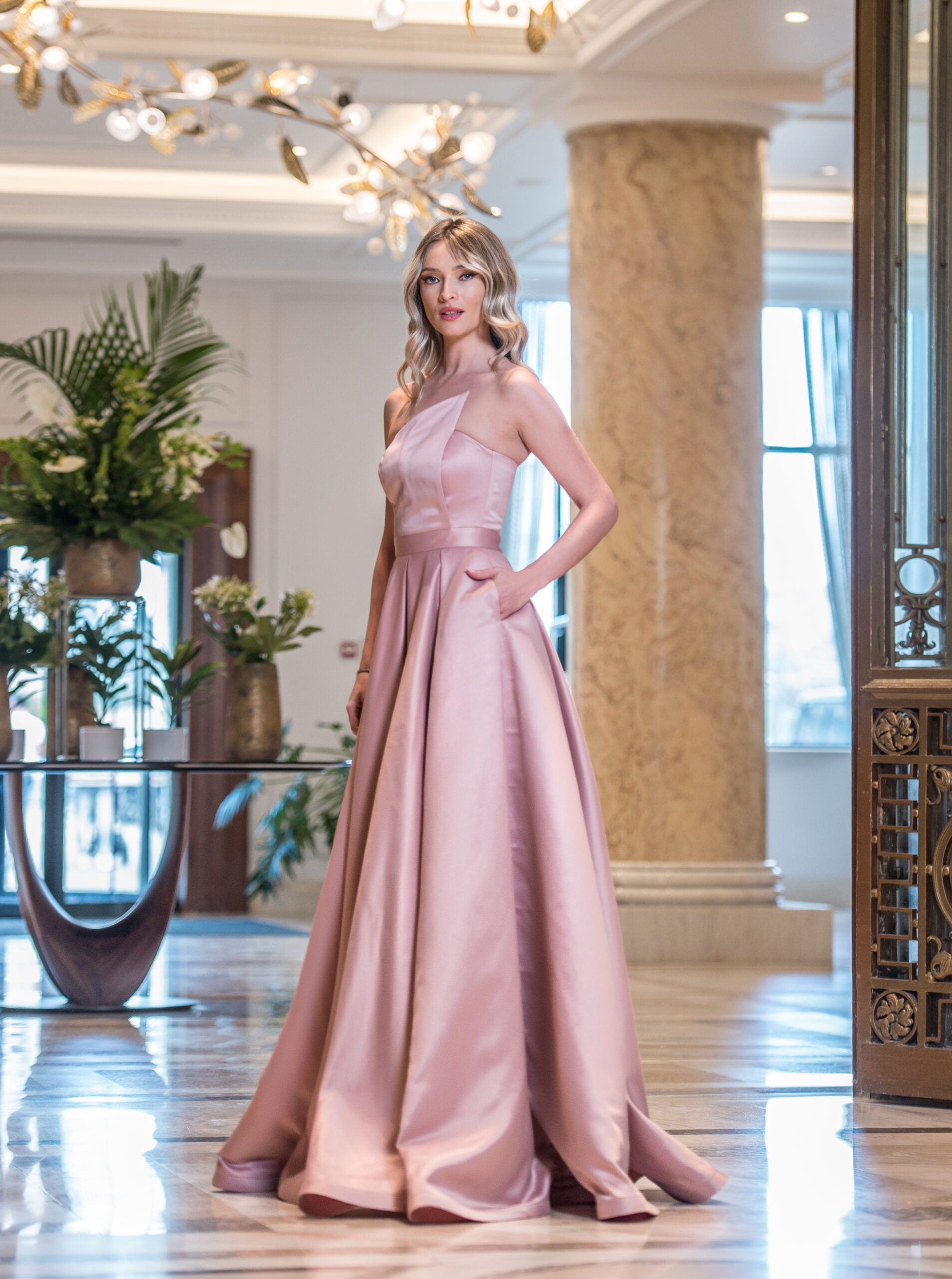 Rochie Lunga, Tip Corset, Din Tafta, Culoare Roz, KELLY