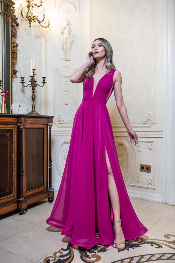 Rochie lunga realizata din tul de matase naturala 100%, Culoare Roz Fucsia, SOPHIA
